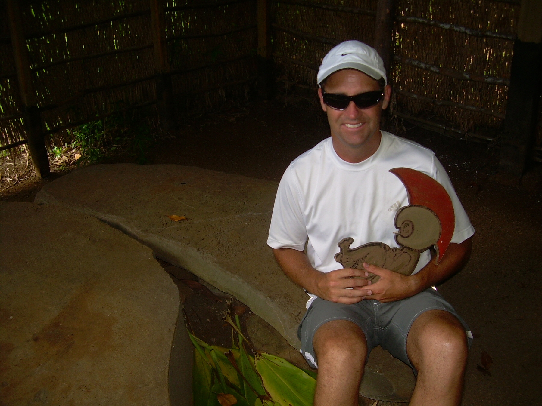 This is John during our vacation in Kauai (my favorite island of them all). We took this photo inside a birthing hut of an old village. From the shape of the two stones, I believe the woman giving birth sat right in the middle. Huge leaves are on the ground in the opening. I was just going to take a picture of the spot when John picked up a carving of the baby on top of the leaves and held it in his arms. See, now wouldn’t he make the best dad?!